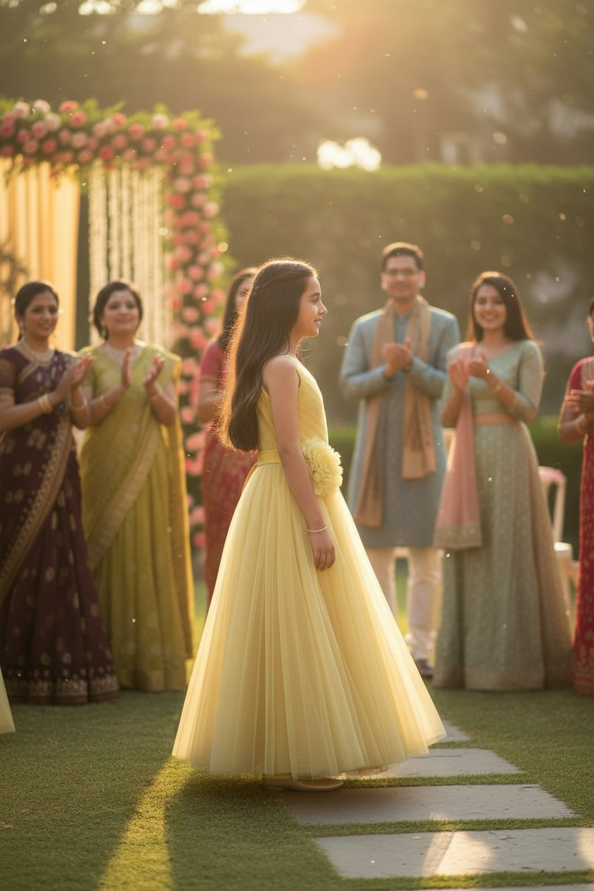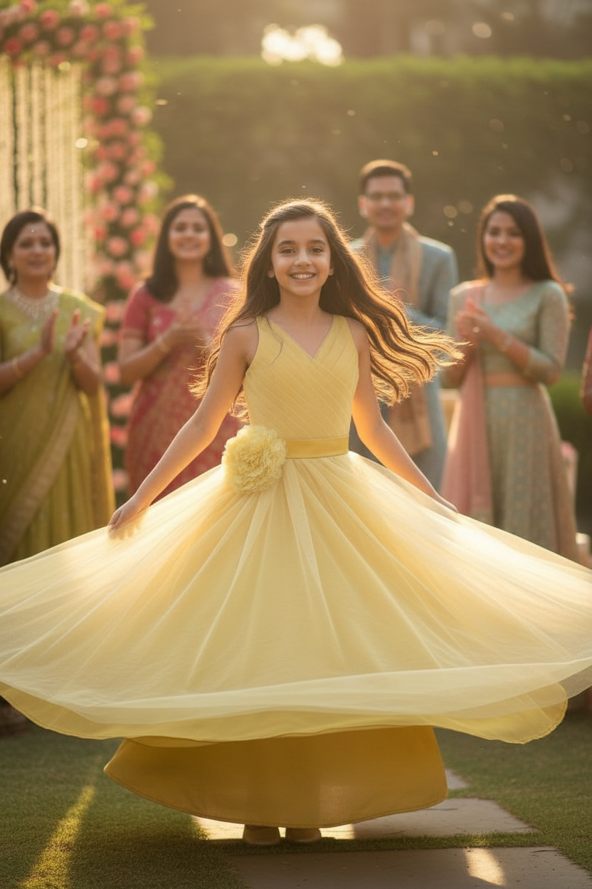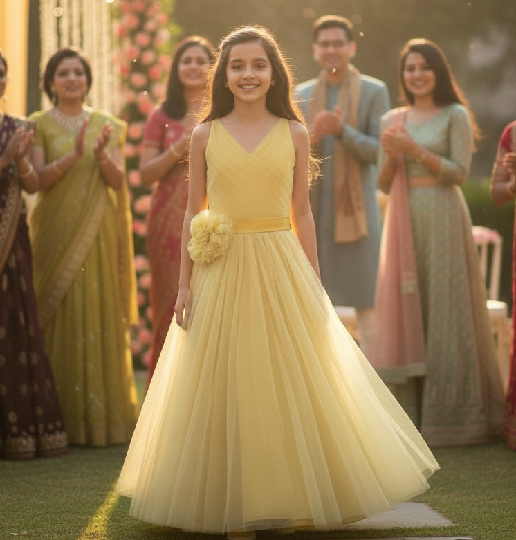 Girls gold Gown length dress M230901