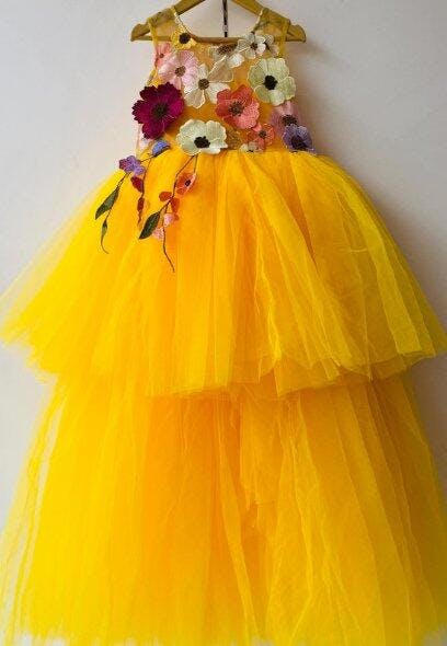 - yellow high low gown length dress