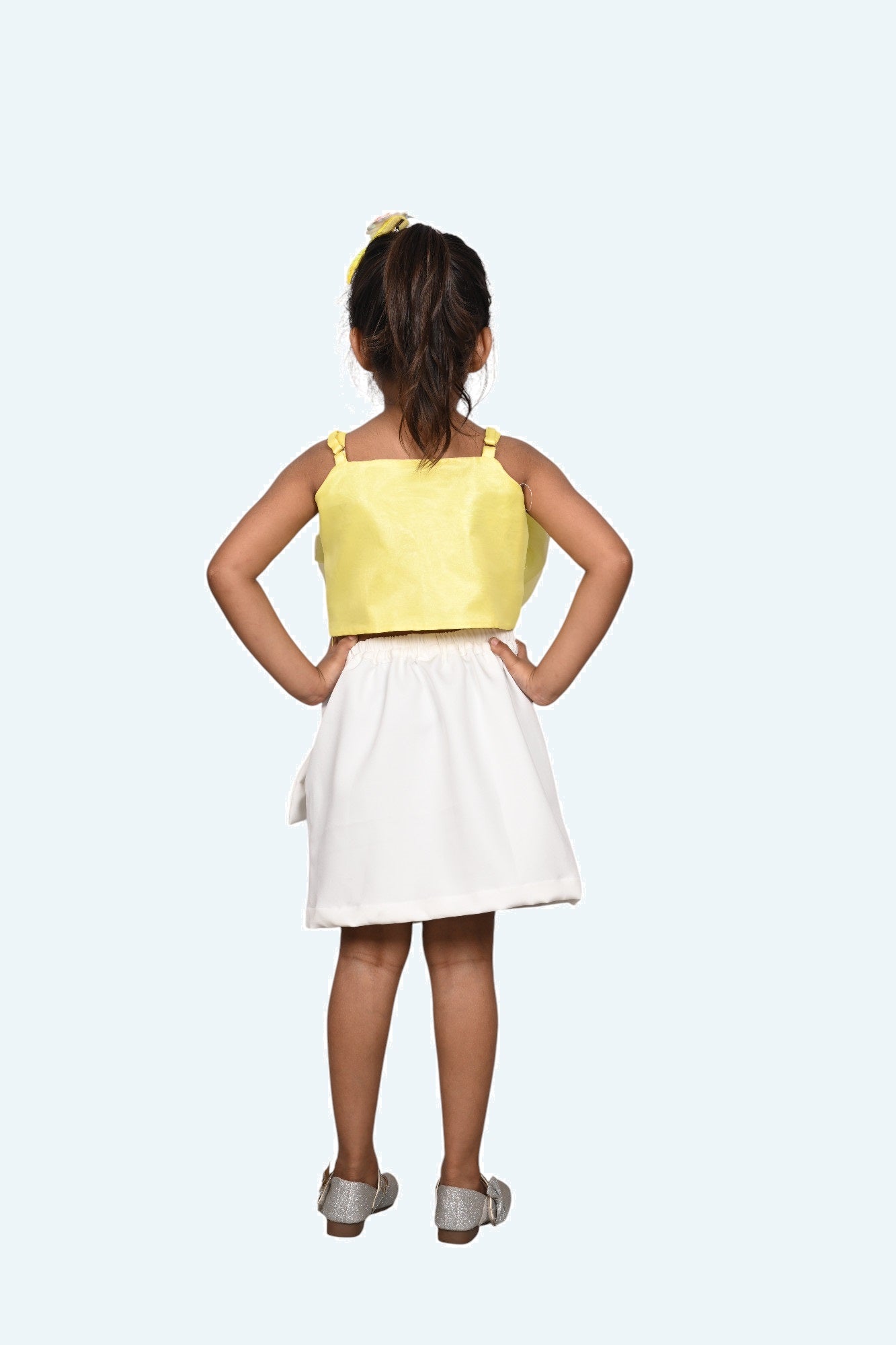 - yellow and White color skirt and yellow Top set