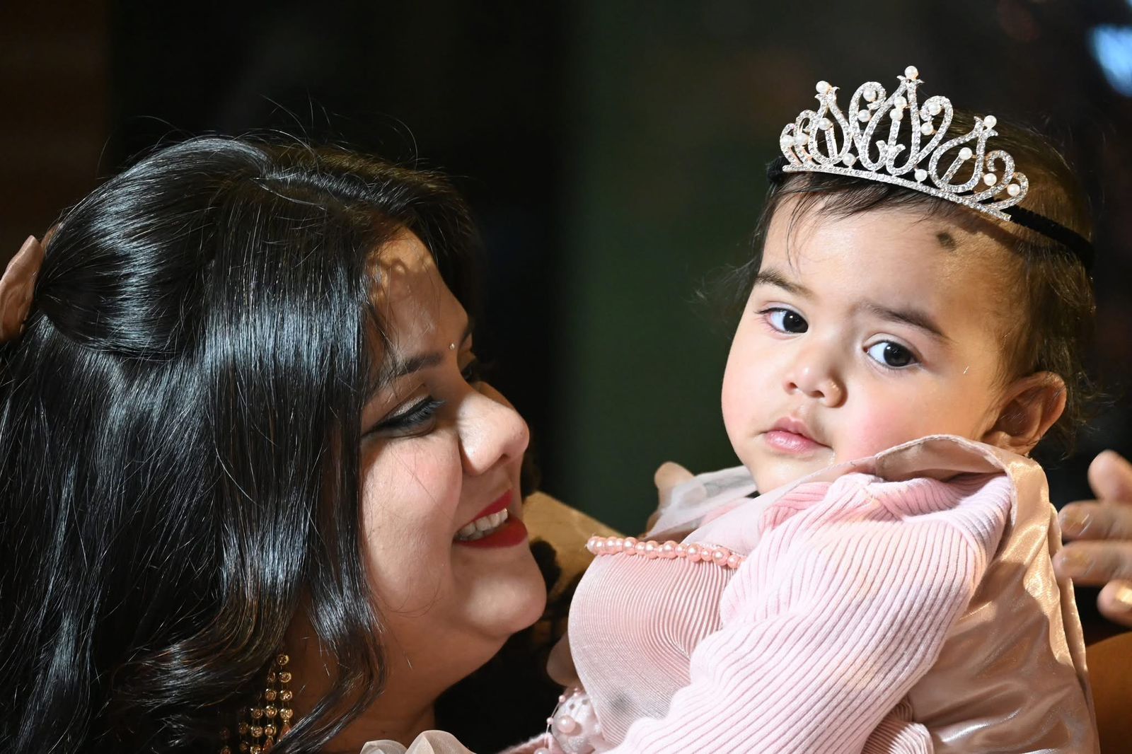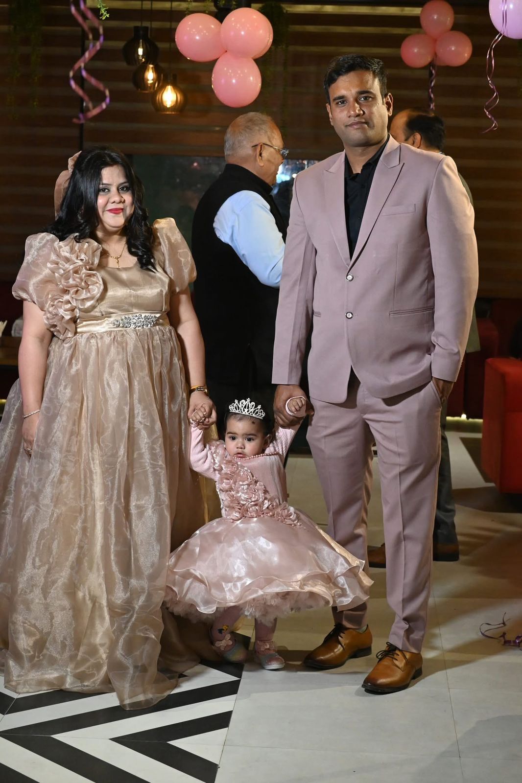 Celebrate the bond of love and style with this stunning mother–daughter twinning set. The mom’s gown features a luxurious champagne gold hue with soft shimmer, dramatic floral detailing on the shoulder, and a beautifully embellished waistline that adds grace and grandeur. Coordinated perfectly, the little princess dazzles in her matching blush–champagne gown, complete with delicate rosette accents, a voluminous flare, and an adorable tiara to complete her royal look. This twinning ensemble blends elegance and charm, making it the perfect choice for birthdays, parties, and unforgettable family moments.